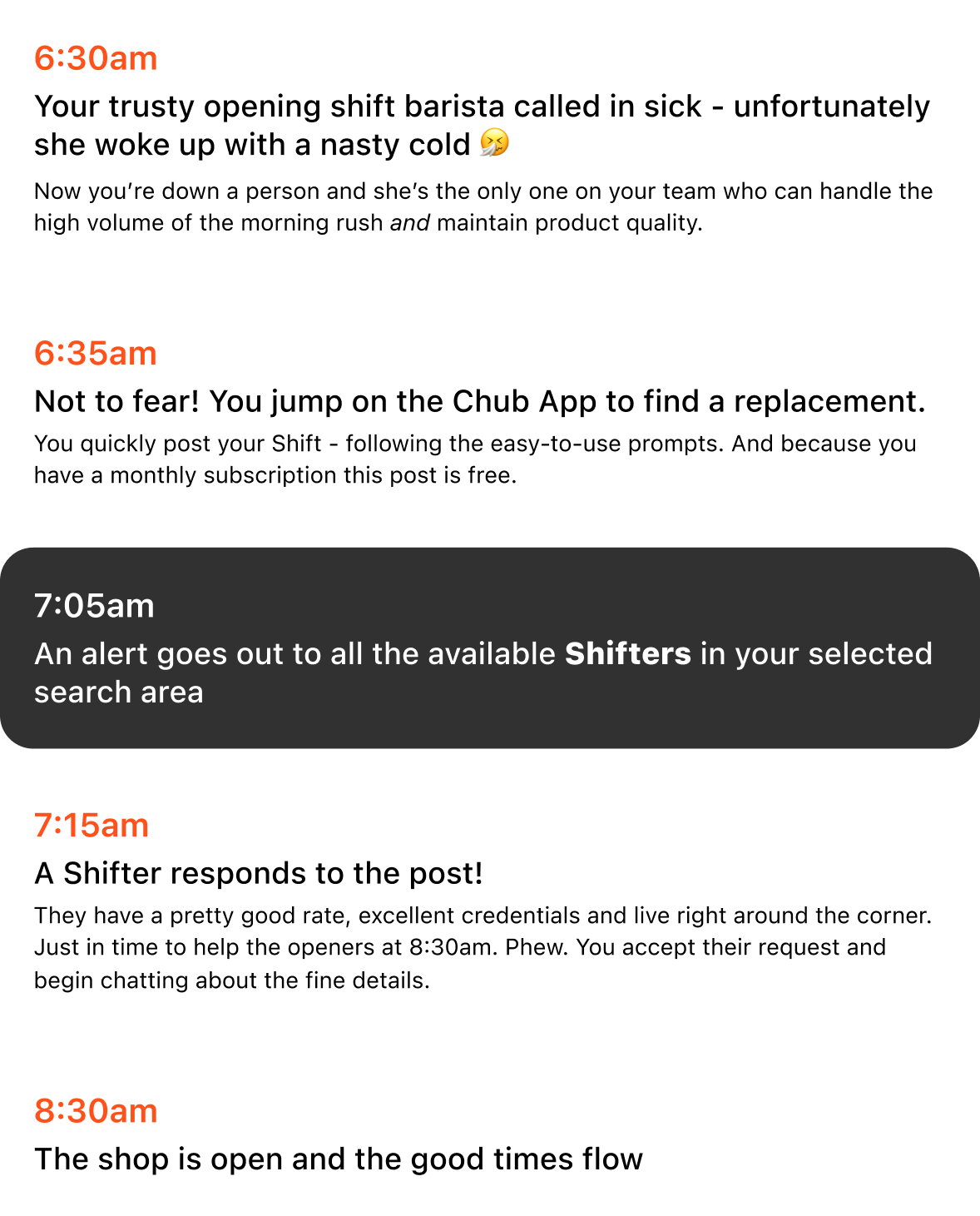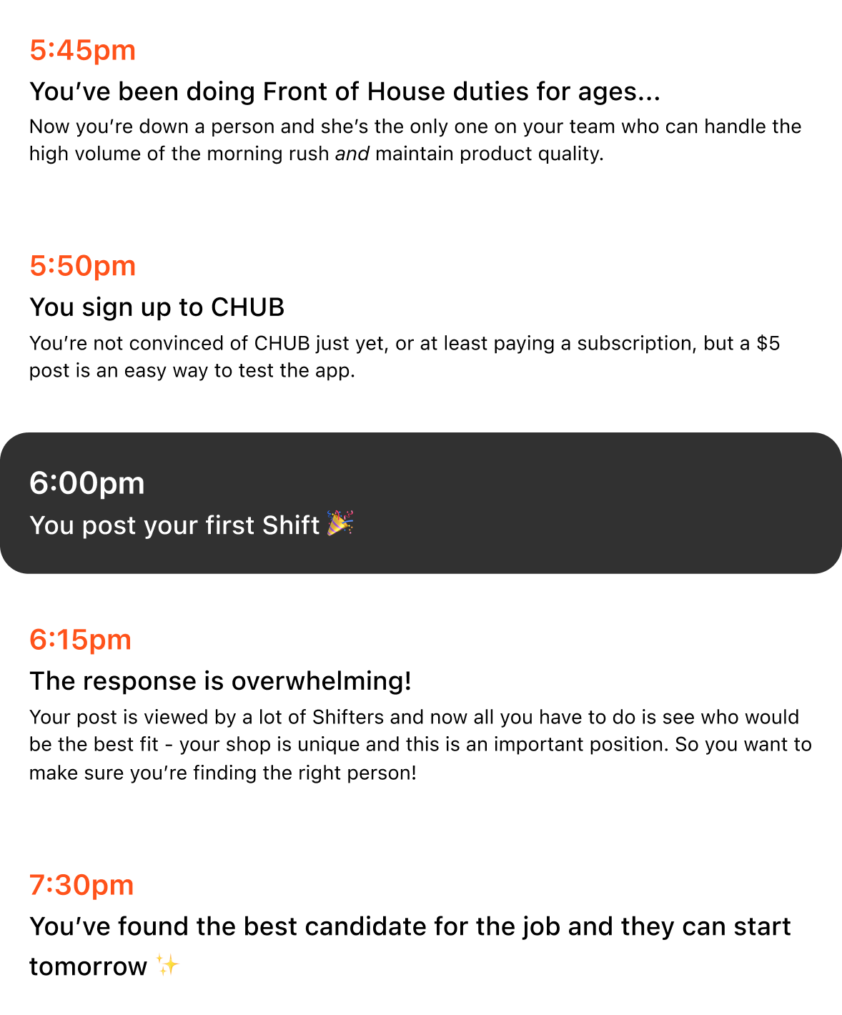 Keep the customer experience consistent when regular staff call out, quit, or take leave. Chub helps maintain smooth operations when it matters most.